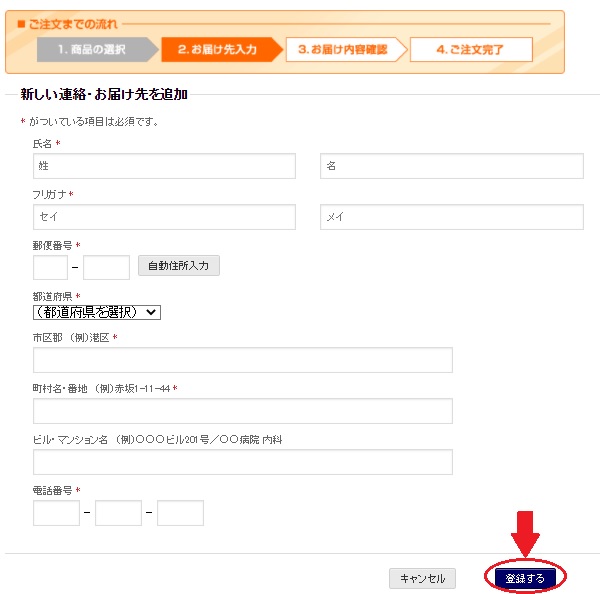 初めての場合は登録が必要となる為“お届け先の登録・変更”をクリックします