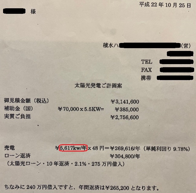 導入したのは2008年度(自宅)・2010年度(アパート)で、48円の買取価格でした