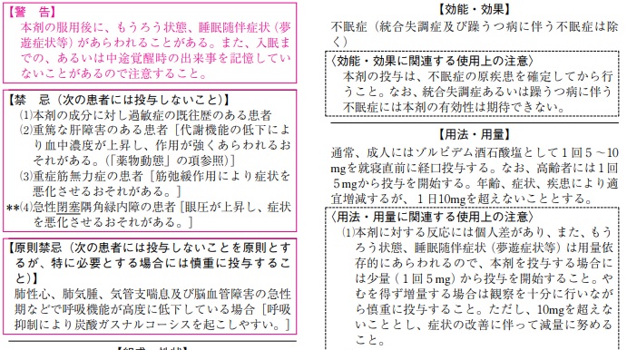 ゾルピデムの用法について就寝直前服用の旨医師確認済