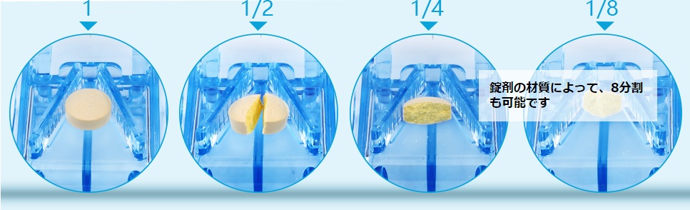 一回の操作で複数の錠剤を分割できる為、錠剤カッターに比べ時間短縮になります