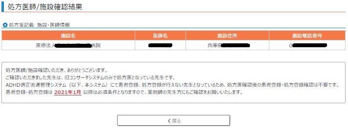 旧コンサータのフラグの医師は上記のような画面が表示されます。