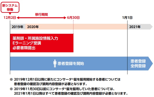 | 2019年12月1日以降から服用患者 | 医師が新システムに登録が必須 | 患者カード有 |