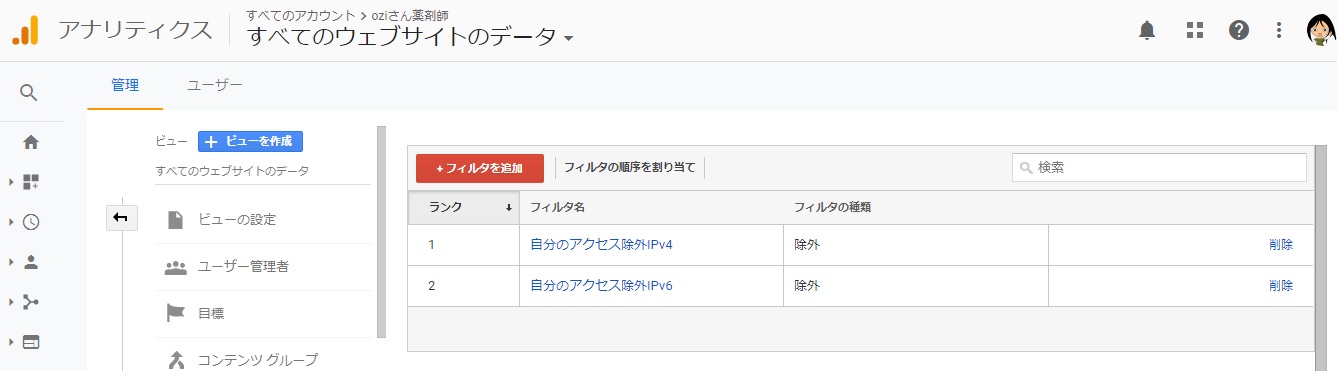 保存するとこんな感じで見れるよ。以上が「IPアドレスを指定して除外」する方法でした。これで自分のアクセスは除外される。