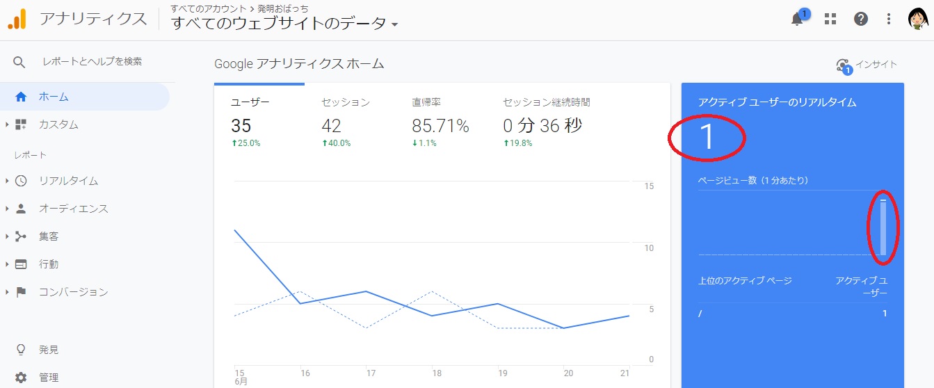 Googleアナリティクスは自分のアクセスもカウントされてしまうから、正確な解析を行う為に自分のアクセスはカウントされんように除外する設定をせなあかんで~。今のままやと自分で自分のサイトにアクセスしたら下のリアルタイム表示をみらた分かると思うけど、カウントされてしまうんや。